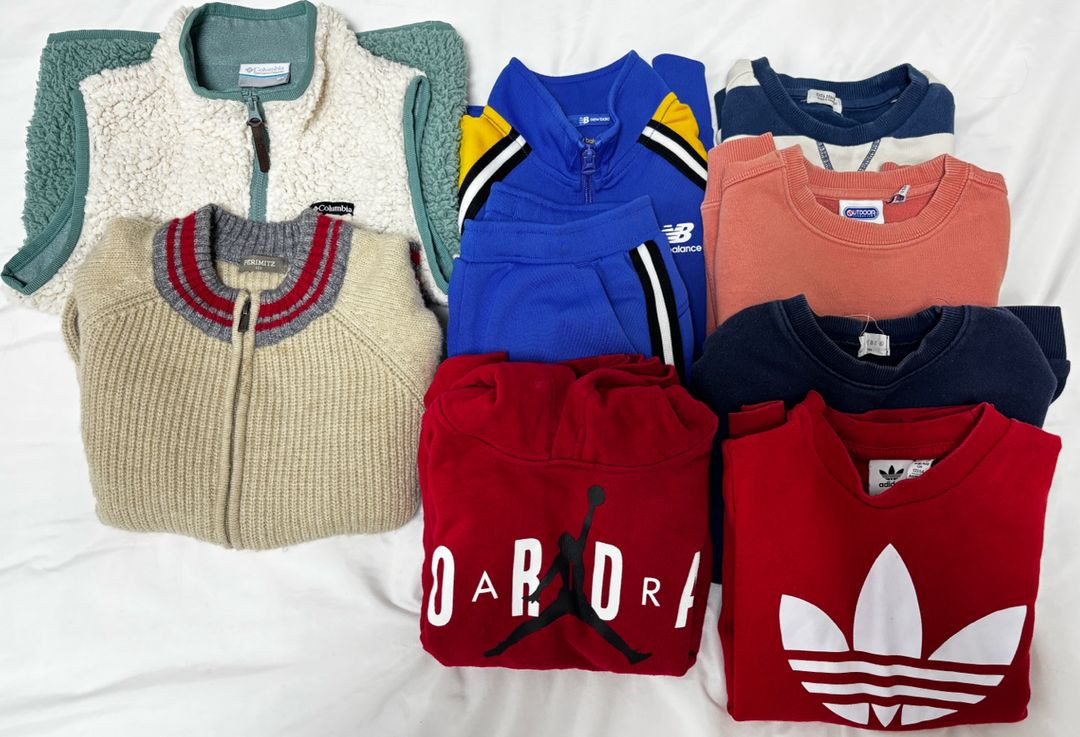 페리미츠가디건,조던후드티120 이외 130사이즈입니다. 120사이즈인데 넉넉한편이여서 130입힐때 같이입혔습니다. 일괄판매하고 깨끗히 입혓으나 중고인점 환불은 불가합니다!