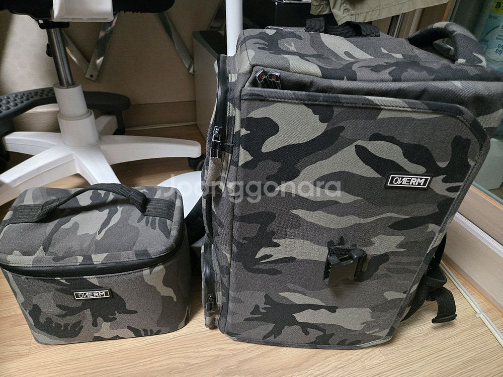 카모플라주 패턴의 캐리백과 파우치가 함께 있는 세트예요. 실용적인 디자인으로 여행이나 일상용으로 활용하기 좋습니다. 상태 양호한 중고 제품입니다. 원알엠