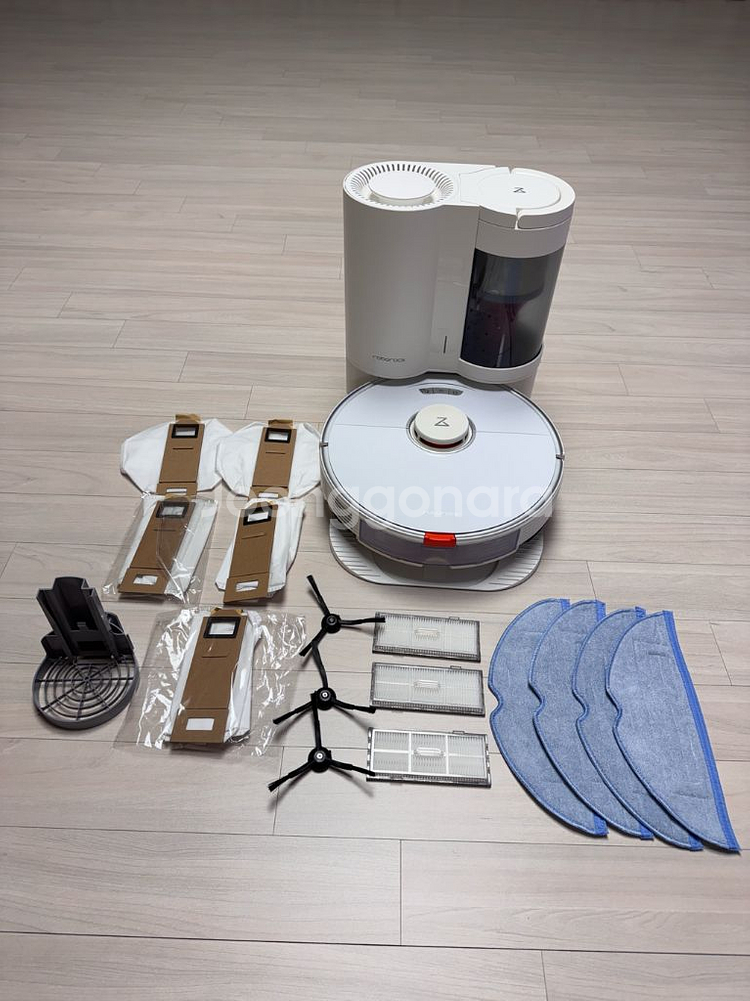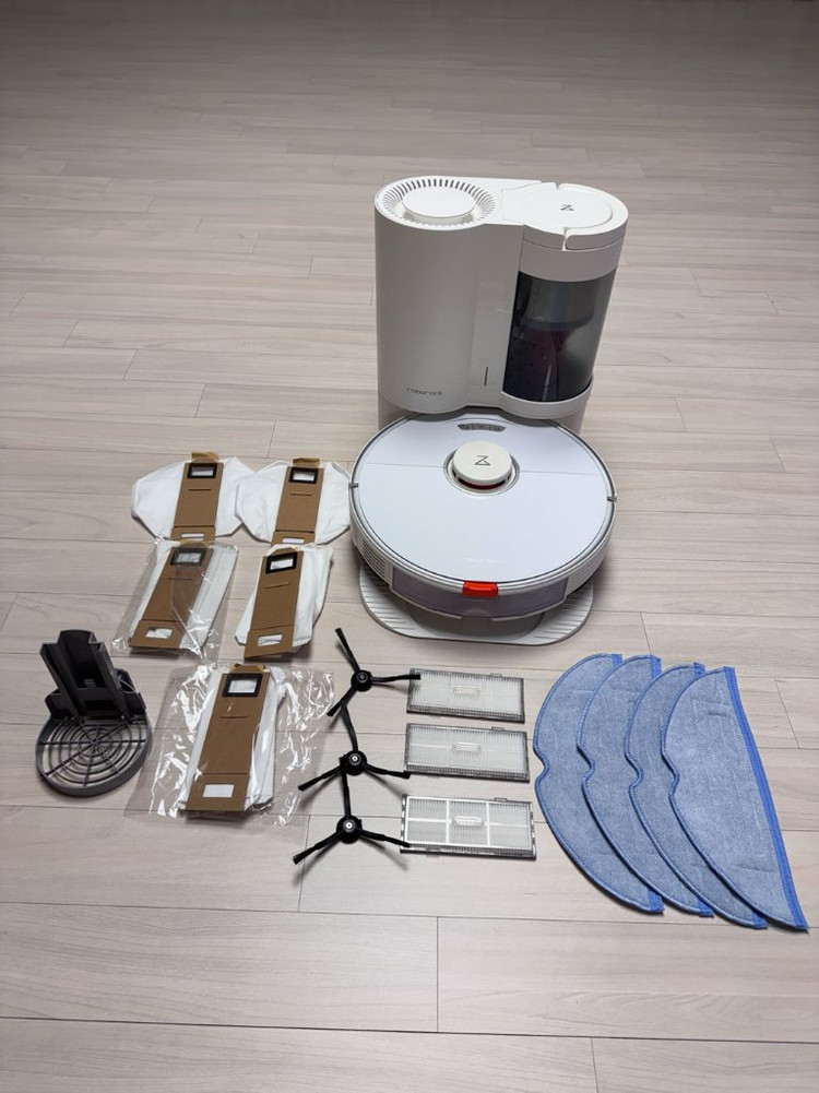 로보락 S7 플러스 입니다... 상위모델 구매로 방출합니다... 외관 사용감 많지 않고...동작 아주 잘 됩니다... 먼지통 자동비움기능있어요(오토엠도크) 강아지.고양이 X 본체 전체 클리닝 했으니... 바로 사용 가능해요 추가 소모품: 필터 3개 (미사용) 사이드브러쉬 3개 (미사용) 물걸레 4개(미사용) 더스트백 5장(미사용) 더스트백 정착가드