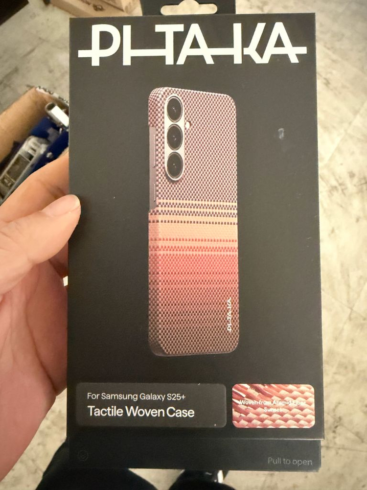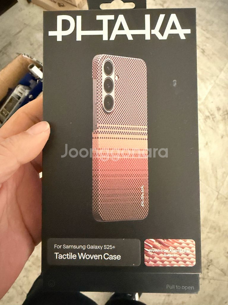 갤럭시 S25+용 케이스예요. s25 플러스 갤럭시 S25+ 피타카 아라미드 섬유 케이스입니다. Sunset 색상으로 은은하게 예뻐요. 신품 8만원인데 선물용으로 구입했다가 반품이 안되서 팔아요