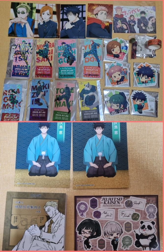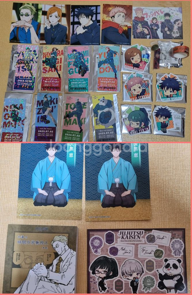 - 구매 전 아래 글 읽고 문의 - 윗치폼에서도 구매 가능합니다 - 중고나라 앱, 윗치폼, 번개장터에서만 판매하며 채팅으로 구매한다며 연락하고 타 사이트 유도, 문자 거래 유도 시 즉시 신고 및 차단합니다. - 구매 문의 외 답변❌ - 개별 양도 ❌. 개별 문의 시 답변하지 않습니다. - 일괄 30,000원에 양도합니다 - 쥬쥬페스 티켓 유타 & 리카 & 마키 & 토게 & 판다 & 노바라 & 유지 & 메구미, 나나미 엽서, 유지 엽서, 노바라 엽서, 메구미 엽서, 스티커 등 사진 속 굿즈 일괄 - 일괄 공식 굿즈. 엽서(고죠X) 제외 일괄 랜덤 굿즈 확인 위한 개봉만 함 - 일괄 구매 시 세번째 사진 속 굿즈 일괄 드림. (일괄 개봉만 한 미사용 새굿즈) - 포장비 900원 별도 - 배송비 별도 - 구매 후 하자 발견 문의 받지 않으며 환불 불가능, 하자 관련 조치❌ - 환불 불가, 찔러보기❌, 개별 양도 ❌, 네고 ❌ - 거래 도중 파기 사양 - 배송기사님이 물건을 인수하신 이후에 문제 발생 시 택배사에 직접 문의 부탁드립니다. (배송 중 파손 발생, 물건이 다른 지점으로 갔다, 미도착)