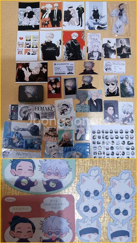 - 구매 전 아래 글 읽고 문의 - 윗치폼에서도 구매 가능합니다 - 중고나라 앱, 윗치폼, 번개장터에서만 판매하며 채팅으로 구매한다며 연락하고 타 사이트 유도, 문자 거래 유도 시 즉시 신고 및 차단합니다. - 구매 문의 외 답변❌ - 개별 양도 ❌. 개별 문의 시 답변하지 않습니다. - 급전으로 당분간 마지막으로 금액 낮춰 일괄 43,000원에 양도합니다 - 주술회전 비공식 고죠 일본 넷프리, 이메일님 고죠 틴케이스, 이메일님 미니 폴라로이드 포카(?), 이메일님 고죠 학생증 & 고죠 증명사진 세트, 이메일님 벚꽃 고죠 투명 포카, 타타님 고죠 포카, 게고 후와 스티커, 게고 포카 등 일괄 - 일괄 비공식 굿즈이며 미개봉 혹은 미사용 굿즈 - 포카, 학생증 등은 파손 대비하여 틴케이스에 넣어 배송됩니다. - 구매 시 마지막 사진 속 굿즈 드림 - 포장비 900원 별도 - 배송비 별도 - 구매 후 하자 발견 문의 받지 않으며 환불 불가능, 하자 관련 조치❌ - 환불 불가, 네고 ❌ - 거래 도중 파기 사양 - 배송기사님이 물건을 인수하신 이후에 문제 발생 시 택배사에 직접 문의 부탁드립니다. (배송 중 파손 발생, 물건이 다른 지점으로 갔다, 미도착)