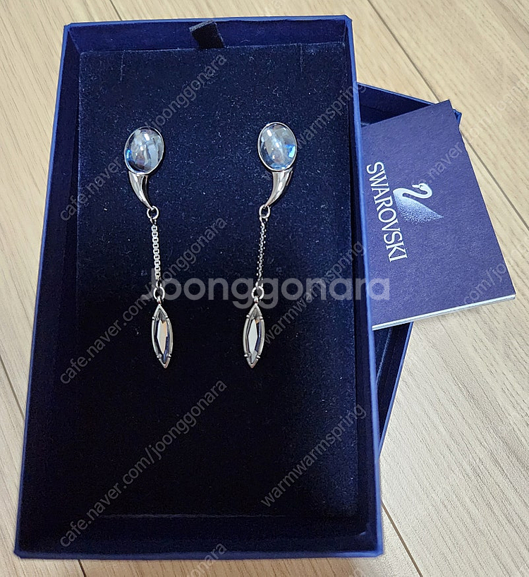 스와로브스키 드롭 귀걸이입니다. 해외 스와로브스키 매장에서 직접 구입한 정품이며 국내에서는 못 본 모델같아요~소장가치 있어요 두어 번 착용은 했는데 제 스타일이 아니라 계속 보관만하기 아까워서 예쁘게 하실 분께 보낼게요~~ 박스, 보증카드 다 있어요. 총길이 6.5cm정도네요. (반품 환불×)