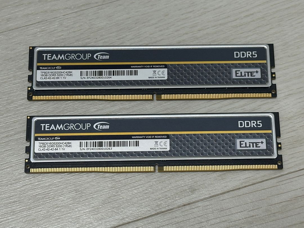 팀그룹 DDR5 5200 ELITE+ 방열판 달린모델입니다. 16GB X 2개 나름 아껴사용했고 작동잘되는상태입니다. 네고는 죄송합니다. 안심결제하시면 됩니다.