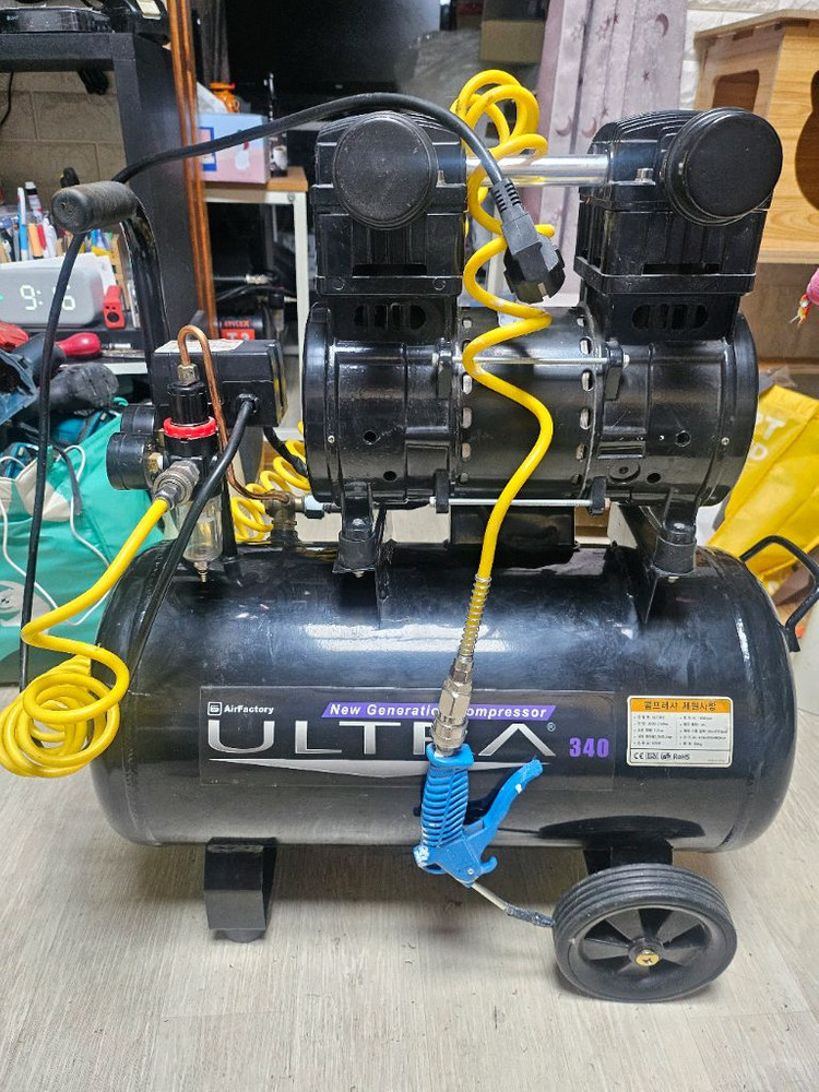 경기도 부천 소사본동입니다. 에어 팩토리 Ultra 340 3마력 40리터 콤프레샤입니다. 저소음 오일리스 저전압 - 탱크 용량은 40L입니다. - 크기는 670x400x660mm입니다. 소음이 적고, 압축 효율이 뛰어나 작업 능률을 향상시켜줍니다. 0ㅣ0 오구공육 4하나 9하나 로 문의바랍니다.
