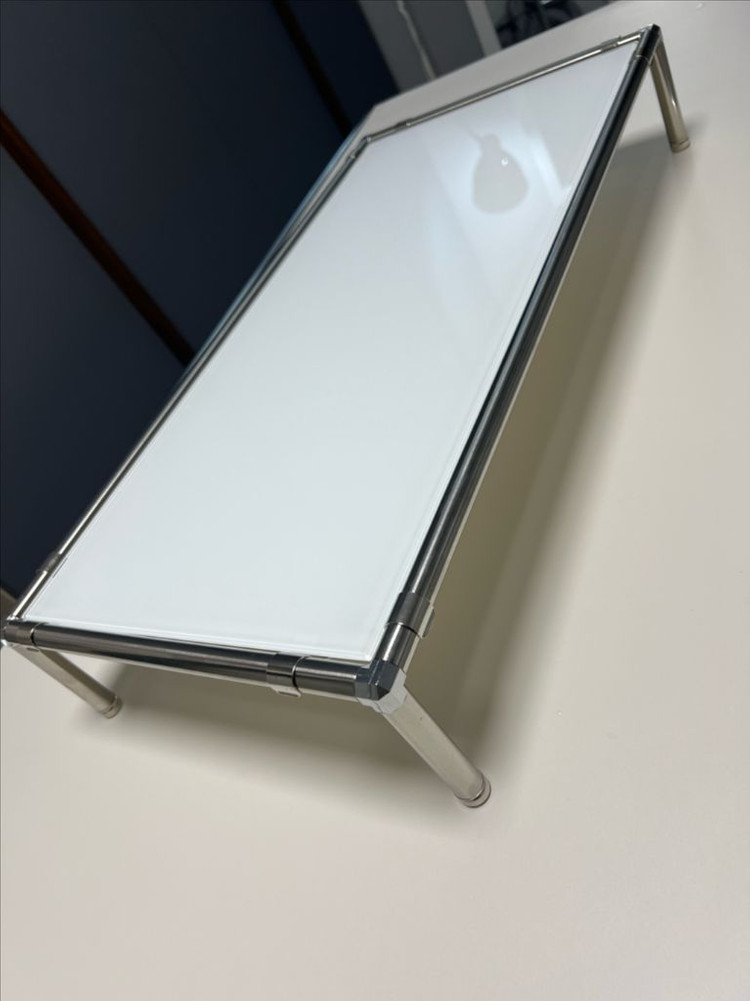 포장만 뜯었습니다 두꺼운 뽁뽁이도 그대로 있습니다 유리 흰색으로 변경 4000원하고 택배비 8000원까지 총 36,650원 들었는데 택포 2.5에 넘깁니다 와이드 모니터 사용시에 일반적인 받침대가 사이즈가 안맞고 데스크테리어 하실때 모듈로 미드센츄리 스타일에 딱 맞습니다
