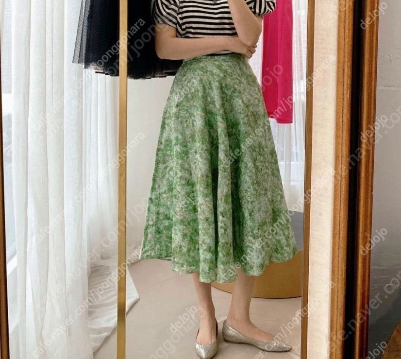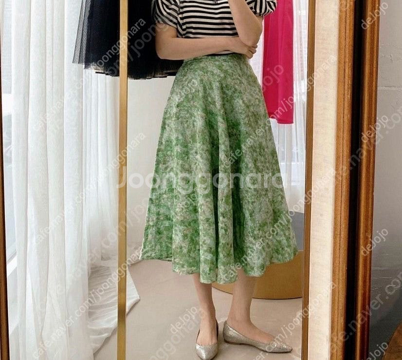 아름다운 녹색 색채가 돋보이는 패턴의 플레어 스커트입니다. 가볍고 패턴이 너무 예뻐서 구매했는데 보관만 하다가 예쁘게 입으실 분이 계실까하여 내놓아요 ! 여름 하객룩으로도 너무 좋을것 같아요 ! 사이즈: 38(55)사이즈 미착용 새상품입니다.