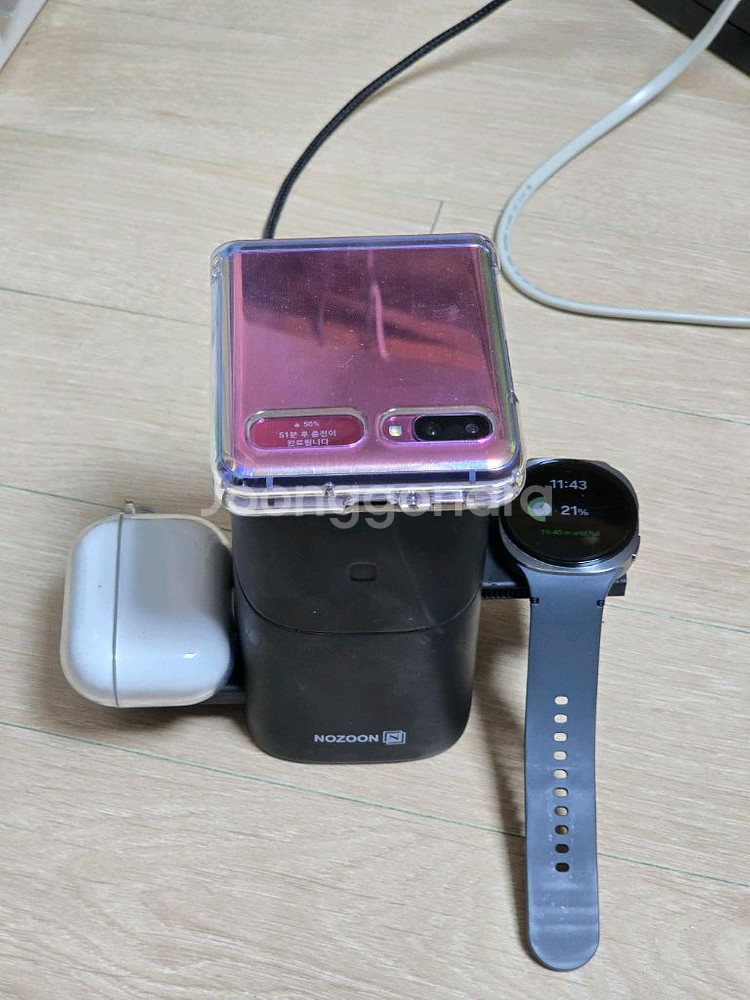 에어팟, 스마트폰, 워치 3개 충전 가능한 노존 3 in 1 무선충전기입니다 색상 블랙 스타필드 고양 직거래 혹은 반값택배는 +1900원, 일반택배는 +3300원[수도권 외 +3800원]입니다.