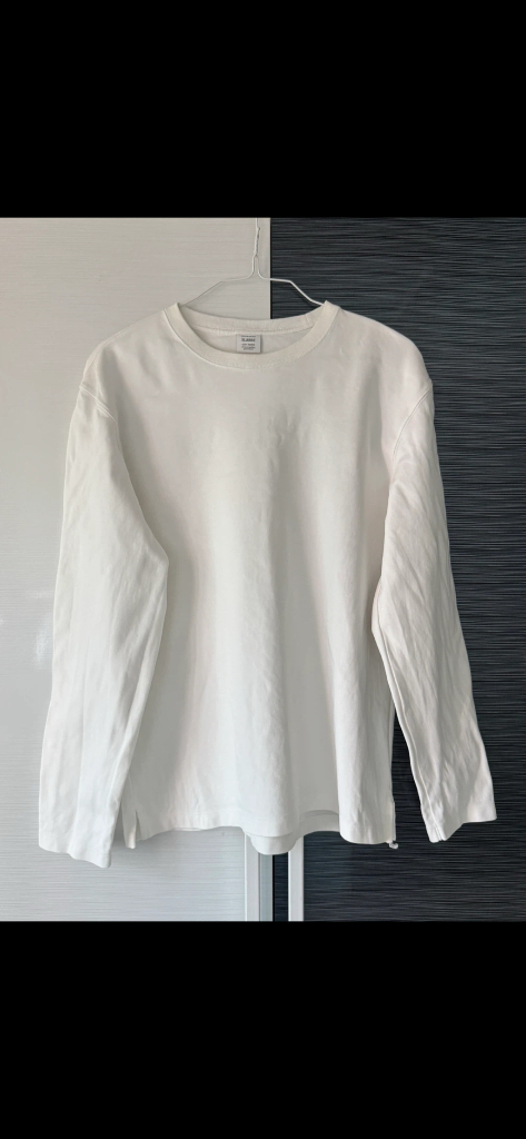 지오다노 긴팔티 XL(105~110) 두어번 입고 세탁 후 보관중 첫번째 제품은 두께감 있는 원단입니다 두번짜 제품은 오버핏 중앙하단에 작은 점만한 오염 있어요 (사진첨부) 잘 보이지는 않아요 일괄 판매 직접 보시고 구매 결정하셔도 됩니다 의정부에 있어요