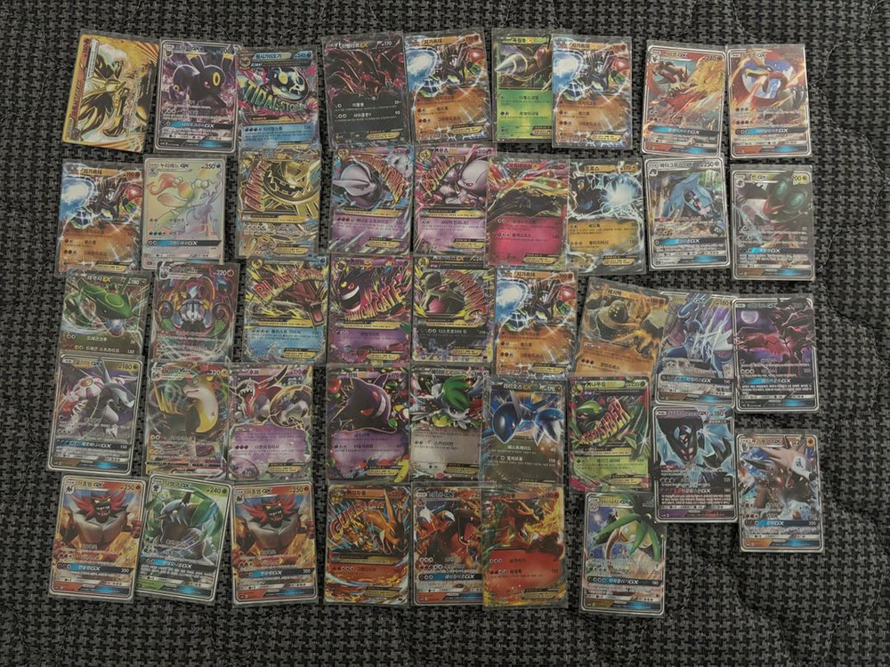 포켓몬카드 M EX GX 42장 일괄 판매합니다 희귀카드 많습니다 전부 슬리브 끼워져있습니다 상태는 B~A급 입니다 직거래만 가능합니다