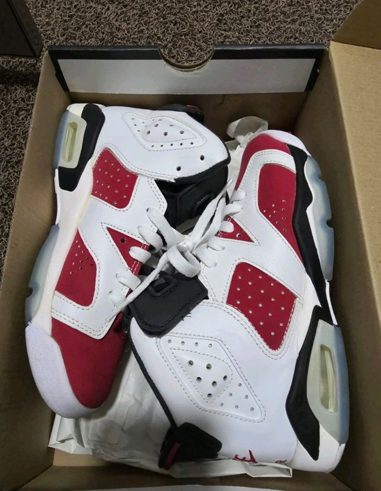 개인정보(거래정보)를 주고받는 행위는 사기에 노출될 수 있으므로 즉시 중고나라로 신고해 주세요나이키 에어 조던 6 레트로 카마인 GS 235 사이즈입니다 박스, 신발, 조던 마크 스티커, 신발끈 조절 도구 구성품 모두 포함되어 있습니다 딱 2회 착용 했습니다 거의 새상품 급이에요