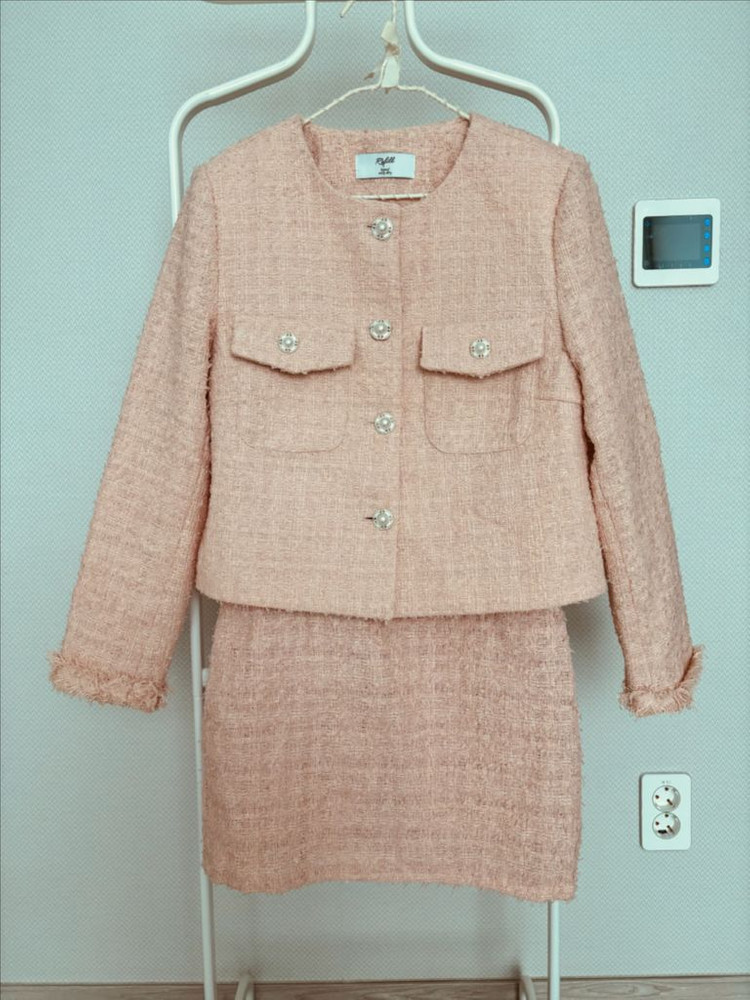 라벨르로즈 트위드 셋업 판매해요 시착만 한 거의새옷입니다 사이즈는 M입니다 55-66 정도입니다 색상 살구빛 로즈핑크로 예쁘고 화사해요 자켓 실측 사이즈는 사진에 줄자로 측정해둔 것 참고해주세요! 색상은 로즈핑크색이고, 트위드 소재에요 저렴히 드리니 예쁘게 잘입으실분 문의문자나챗주세요 개인중고거래상 반품 어려운점 양해해 주시고 자세한문의 주시면 친절하게 답변드립니다