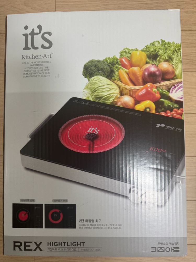 키친아트 렉스 하이라이트 전기레인지 KA-805 새상품입니다 - 1구 - 휴대용 - 고급형 PRO - 2중 확장 화구로 조리 용기와 재료에 따라 화구를 선택해서 사용할 수 있습니다 - 터치식 여러게 사서 쓰고 이건 테스트겸 한 번 사용하고 넣어놨었어요~ 사용하지 않아 내놓습니다