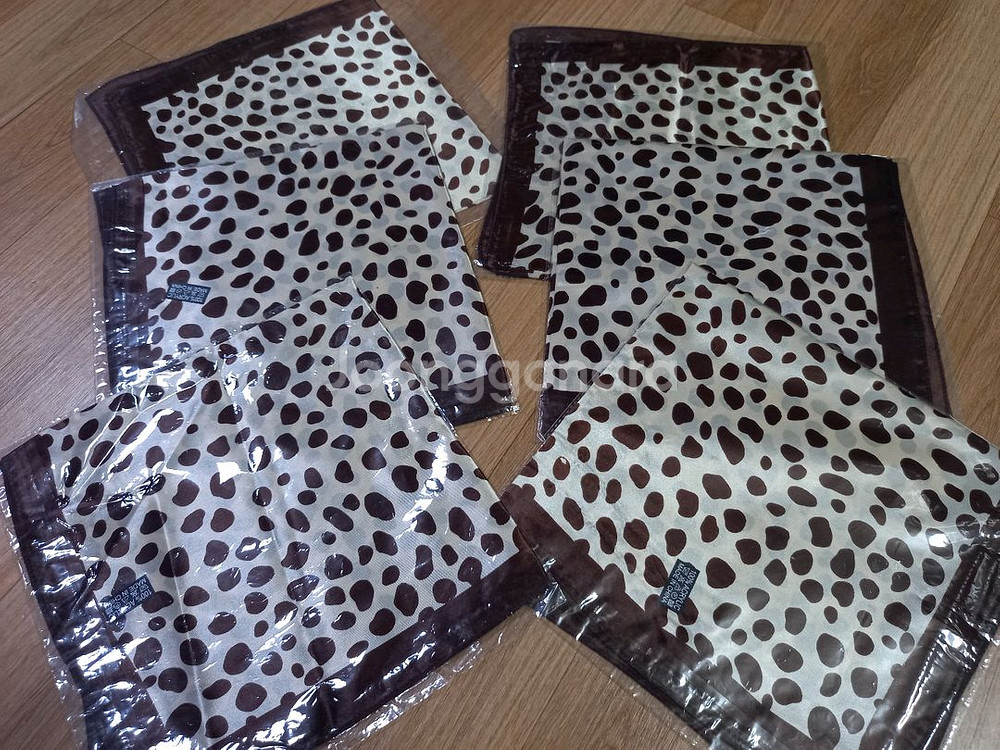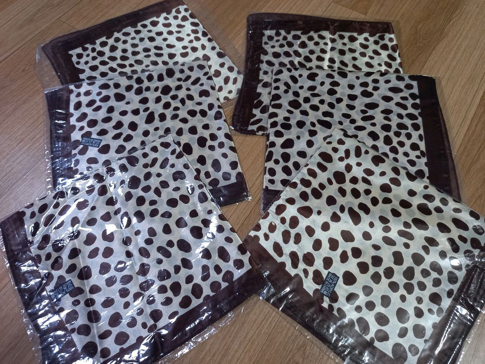 사각 스카프 예요. 아크릴,폴리 소재구요. 가로50,세로50센티 입니다. 장당 1천원 배송료는 일반 4천원, GS25반값 2천원 입니다. 예약,반품,절충은 사양해요 1,갈색 레오파드 3장 2,핑크 9장
