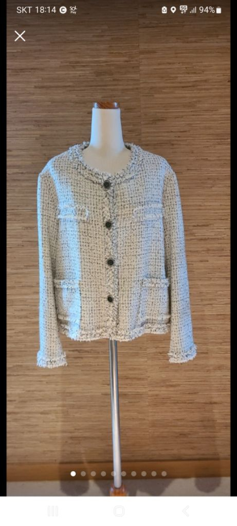 리엘 RE_L 트위드 자켓 - 66~77사이즈 - 실측치수: 가슴단면 53cm, 총길이 56cm - 소재: 울 40%, 아크릴 40%, 폴리 20% - 색상: 화이트 계열 - 옷 상태 최상입니다.