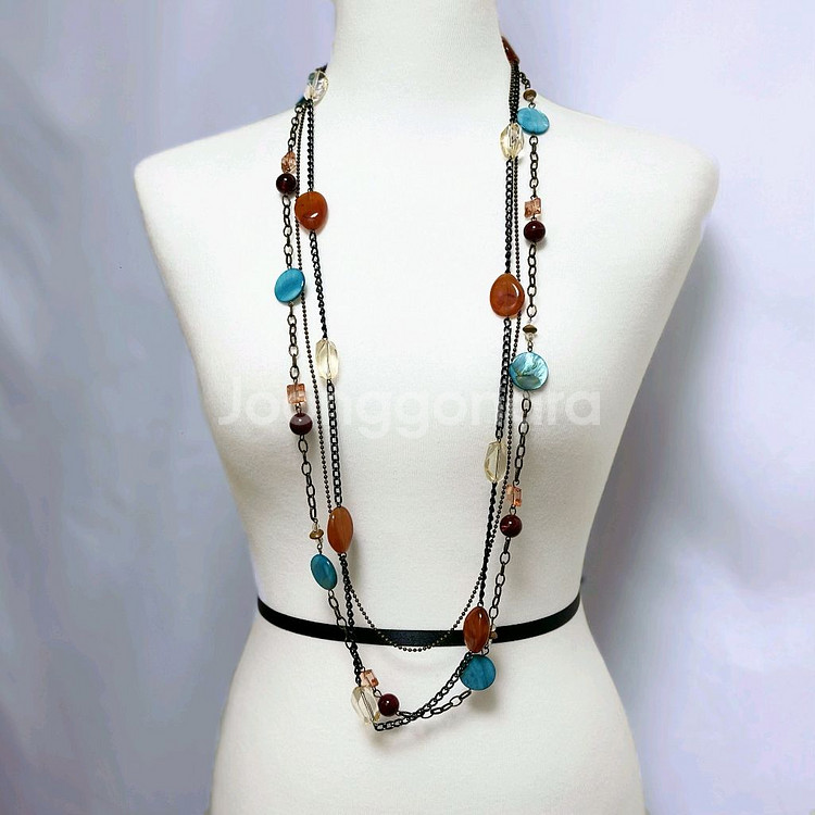 제가 파는 다른 목걸이, 귀걸이, 팔찌랑 같이 하시면 에눌💸 해드려요 핸드메이드 제품이라 디테일이 엄청 좋은 엔틱한 패션 롱목걸이입니다 자켓, 니트, 남방, 셔츠, 긴팔, 반팔 다 잘 어울리고 심플하게 입어도 너무 반짝이지않아서 잘 어울립니다 상태 최상이구요 구제 빈티지 좋아하시면 엄청 마음에 드실거에요 목걸이 둘레 92cm