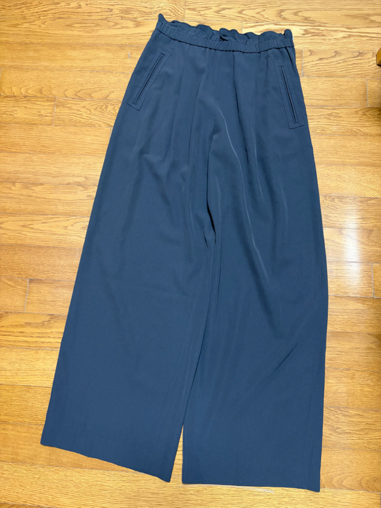 다크브라운 색상 허리 밴딩이나 옆지퍼 있어요~ 다크브라운 색상이고 찰랑거리는 소재입니당 반품 33.3 총장 103