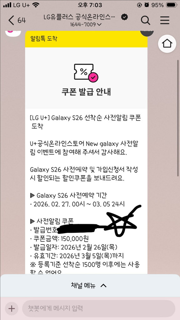 lg u+ 갤럭시s26 사전예약 15만원 쿠폰