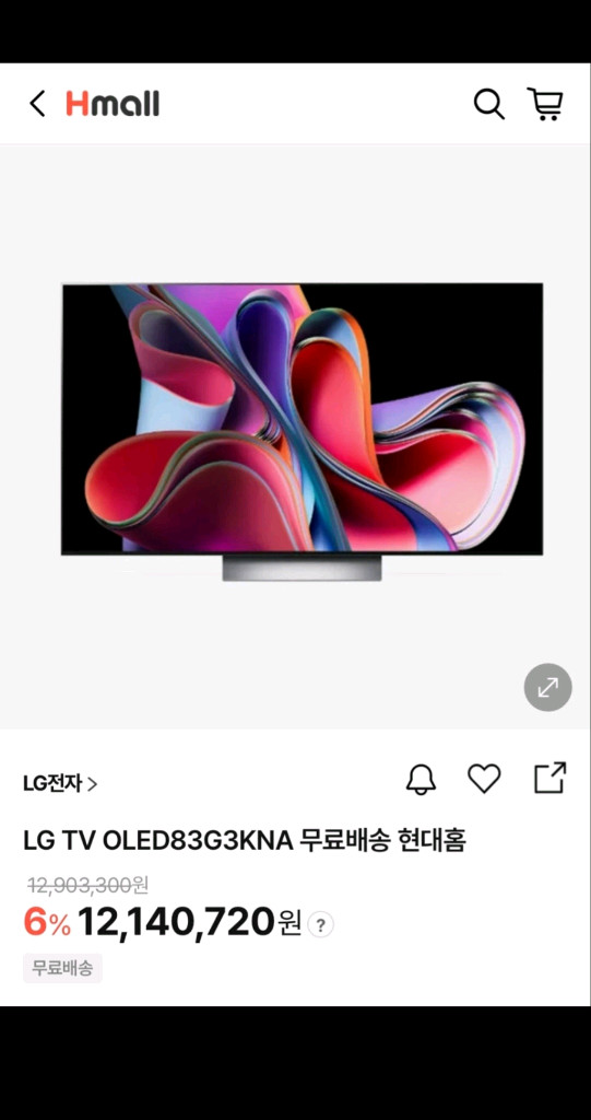 LG TV 중 가장 고급형인 G(Gallery) 시리즈 OLED 83인치 TV G(Gallery) 시리즈는 올레드 중 가장 밝고 선명한 에보 패널이 탑재되어 일반 모델(B, C시리즈)과는 차원이 다른 밝기와 화질의 하이엔드 제품입니다. G모델 특성상 내장 스피커 성능이 좋아 따로 스피커를 구매하지 않아도 됩니다. 벽에 밀착되는 슬림한 갤러리 디자인이 고급스러운 모델이에요~ • 모델명: OLED83G3KNA • 구입처: 롯데백화점 영등포 • 구입가: (혼수 여러개 구입으로 할인받아) 1000만원대 • 현재 판매가: 1200만원대 • 제조연월: 2024년 4월 (사진첨부) • 상태: 스크래치 등 하자없는 S급 컨디션 신혼집 입주하며 깨끗하게 아끼며 사용했고 매우 큰 티비라서 아기 안전 우려로 판매합니다. +) LG 이전 설치 비용 별도 (스탠드 기준 철거+이전+설치까지 282,000원)
