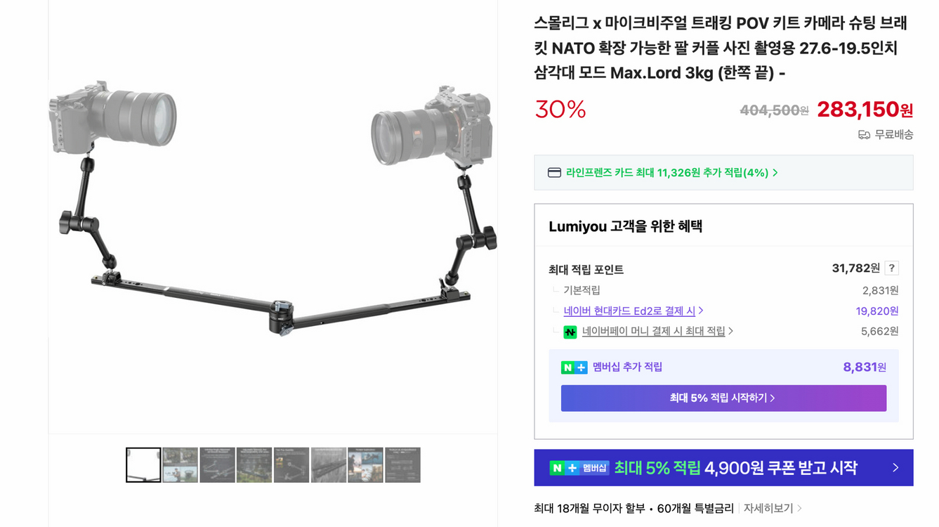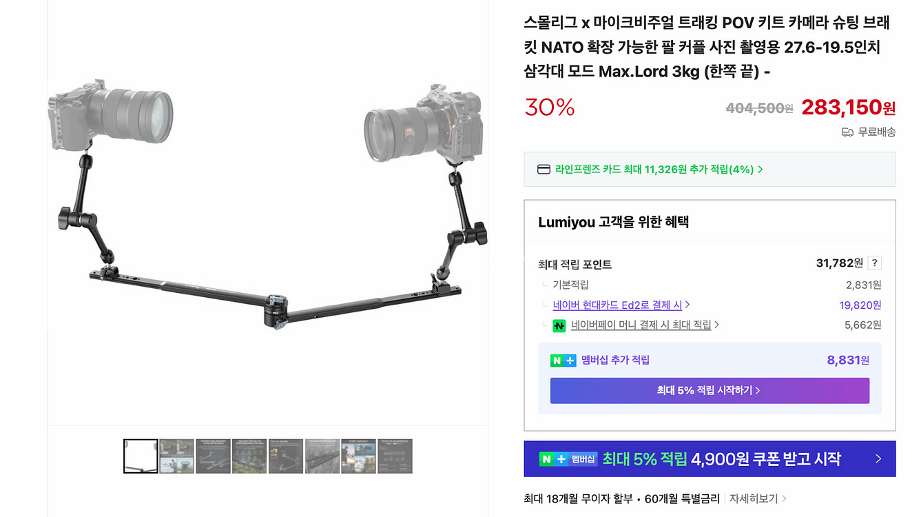 스몰리그x마이크비주얼 트래킹 pov+스위블틸트 모니터마운트+듀얼볼헤드 매직암