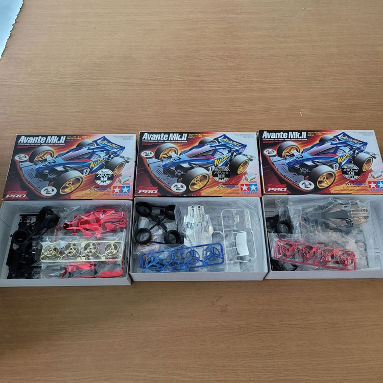 타미야 미니카 아반테 마크2 메탈릭 3종 일괄로 판매합니다. MS샤시채용, 타미야 자체 메탈릭 바디 출시 레드메탈릭, 블랙메탈릭, 실버메탈릭으로 구성되어져 있으며, 각 킷마다 휠의 색상마저 영롱합니다. 일본내에서 유통되고 있는 킷을 어렵게 구해 소장해오다 취미를 접게 되어 판매하게 되었습니다. 투명한 플라스틱 상자에 넣어 우체국으로 안전하게 발송드리며, 소장용으로는 최고라고 생각합니다. 감사합니다.