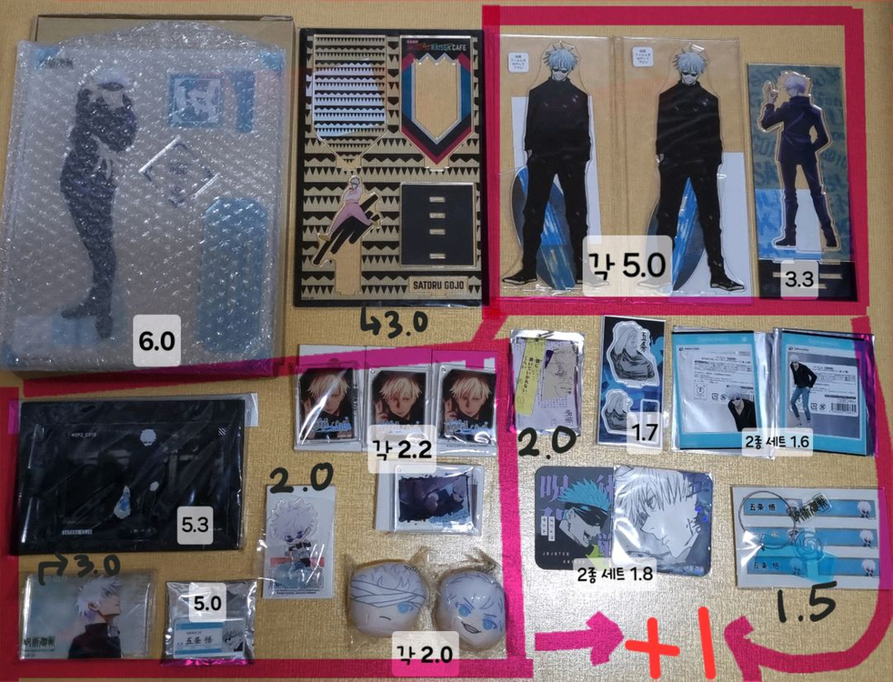 - 구매 전 아래 글 읽고 문의 - 윗치폼에서도 구매 가능합니다 - 중고나라 앱, 윗치폼, 번개장터에서만 판매하며 채팅으로 구매한다며 연락하고 타 사이트 유도, 문자 거래 유도 시 즉시 신고 및 차단합니다. - 구매 문의 외 답변❌ - 구매 전 상품에 대해 구매 문의가 아닌 이건 어떤 굿즈인지, 무슨 굿즈인지에 대한 문의는 일체 받지 않습니다 - 1~7번째 사진의 +는 5~10번째 사진에서+숫자만큼 추가하셔야 구매 가능. - +표시된 것끼리는 추가 불가능 - + 표시가 없는 거에서 + 개수만큼 추가로 구매하셔야 구매 가능. - 빠른 양도 위해 구매 금액 최소 40,000원 이상부터 거래 - 사진 속 굿즈 금액 단위는 1.0=10,000원입니다 ※ 랜덤 굿즈 경우 캐릭터 확인 위한 단순 개봉. 그 외 일괄 미개봉 새 제품 ※ 포장비 별도(안전봉투 등 거래 확정시 크기에 따라 안내) ※ 배송비 별도 ※ 하자 발견 문의 받지 않으며 환불 불가능, 하자 관련 조치❌ ※ 환불 불가, 찔러보기❌, 개별 양도 ❌, 네고 ❌ ※ 거래 도중 파기 사양 ※ 구매 관련 문의 아니면 답장 안 합니다. ※ 배송기사님이 물건을 인수하신 이후에 문제 발생 시 택배사에 직접 문의 부탁드립니다. (배송 중 파손 발생, 물건이 다른 지점으로 갔다, 미도착)