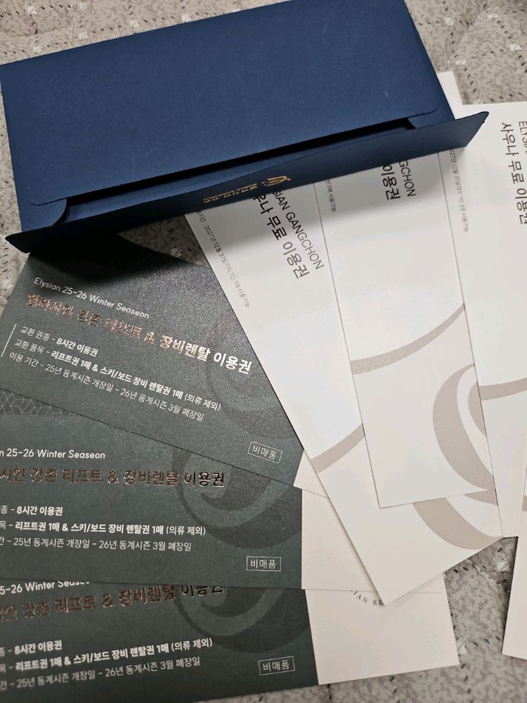 엘리시안 강촌 25-26 Winter Season 리프트 & 장비 렌탈 이용권입니다 사우나도 포함되어 있습니다 리프트+장비 3장 사우나권 4장 일괄 판매 11만원