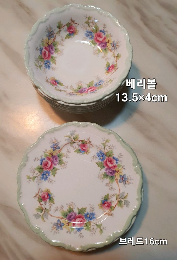 영국 로얄알버트 콜린 브레드와 베리볼 개당 가격입니다. 은은한 꽃무늬와 민트색 테두리가 고급스러움을 더합니다. 브레드 접시는 16cm, 베리볼은 13.5x4cm입니다. 국내에선 귀템으로 영국앤틱숍 구입햇습니다 백스템프에 스크레치있는 세컨분류 상품으로 미세 생활흔적외엔 별다른 흠없이 상태 양호 합니다 베리볼13.5×4cm7개 개당25000 브레드16cm7개 개당 ₩17000 [네이버 블로그] 블로그를 소개합니다. skn00899의블로그 | 미쎄스신컬렉션 https://m.blog.naver.com/skn00899 ※매너거래 해주세요. ※반품환불.네고 예민 정중히 사양합니다. 택배 가능합니다