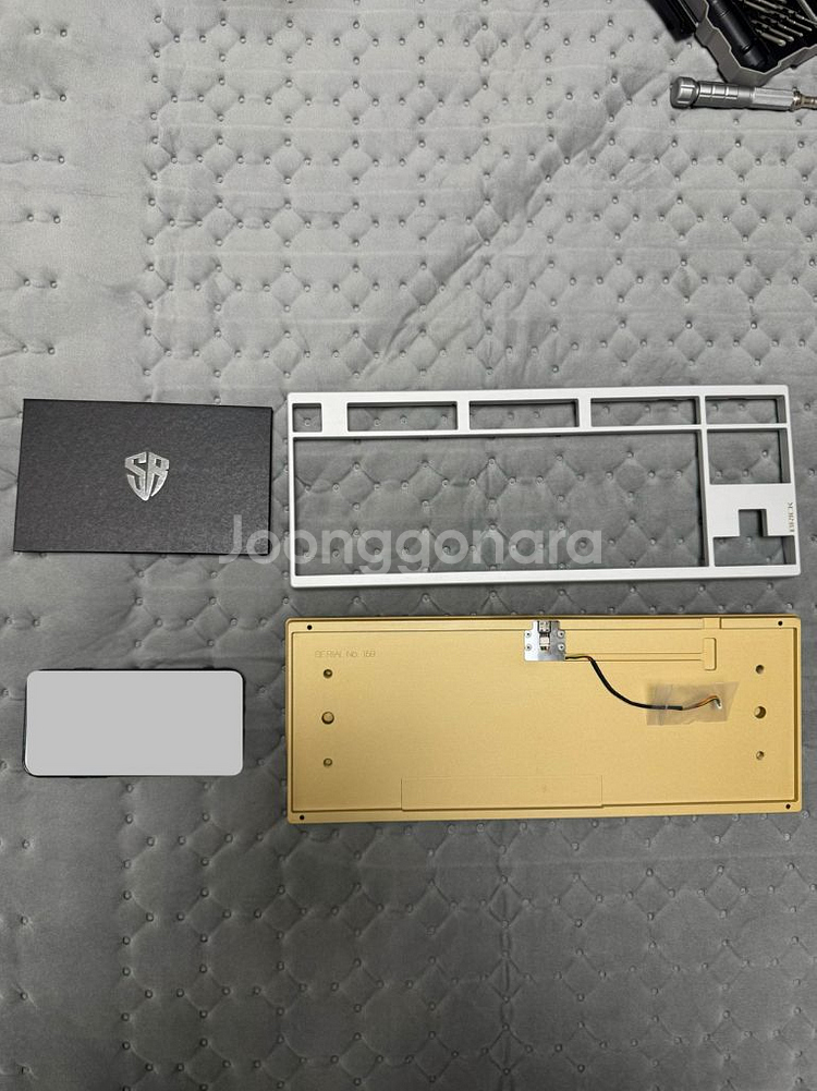 Brick 브릭 TKL 황동하판(코팅) - 상판 2개 실버 wk, 블랙 wkl - 황동하판(클리어 코팅) - 핫스왑 기판(미사용) - 보강판 4개(알루2, 서스, 카본) - 하판 보호필름(미사용), 케이스 폼(미사용) - 2차 구매후 미사용 - 상판 콕 있음(사진 참고) - 전용가방 말고 다른 텐키리스 가방으로 교체 - 황동하판 우측 부분 미세자국 (판매처에서 수작업 후처리 과정에서 발생할 수 있다고 사전고지) 택배시 파손면책 동의 및 환불불가 조건