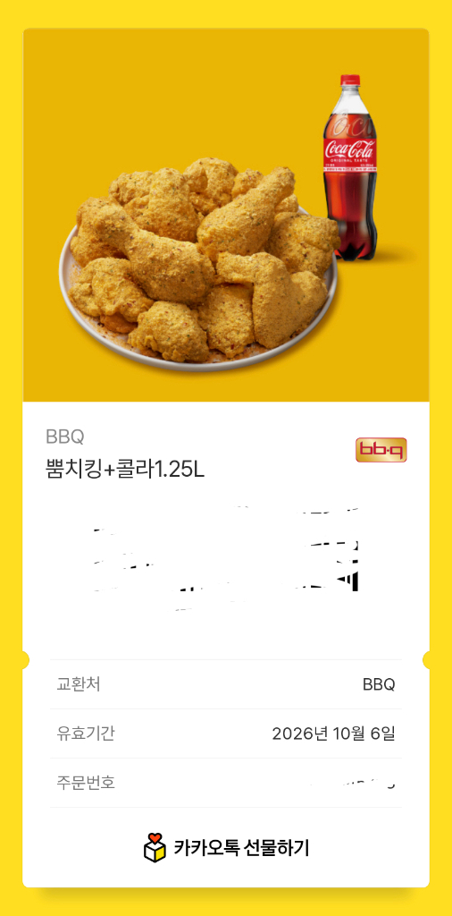 치킨 기프티콘 팔아용 원가 27500인데 싸게 팝니다 2026.10.26까지입니다