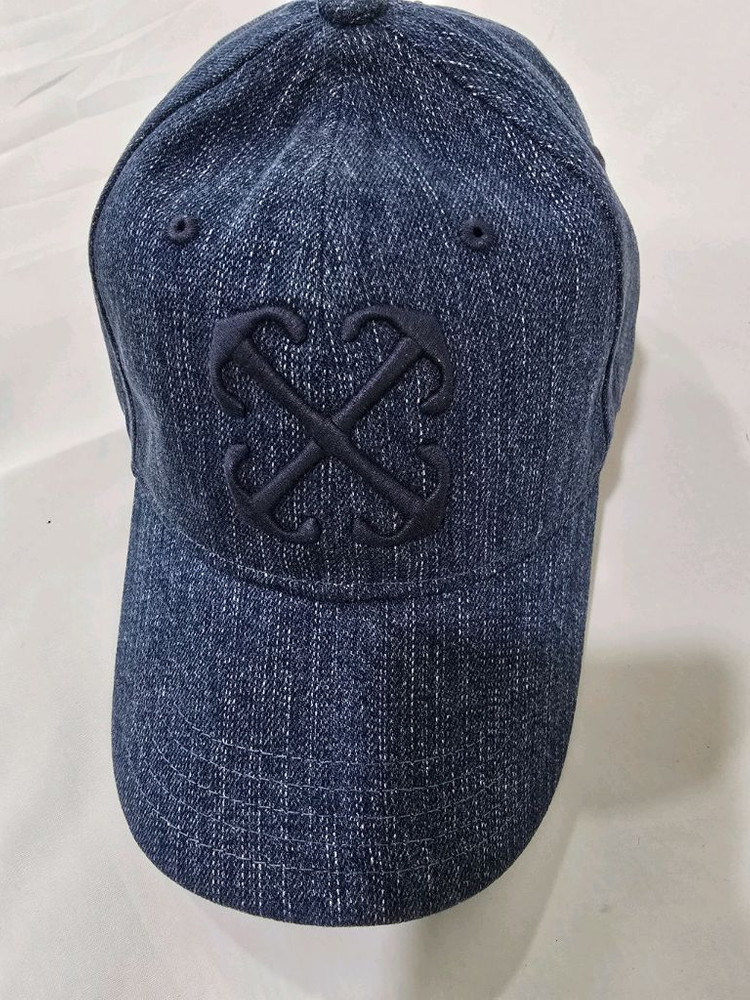정품 오프화이트데님 소재 볼캡이에요. 태그가 달린 새 제품 상태로 깔끔한 네이비 컬러가 매력적입니다. 캐주얼하게 착용하기 좋은 아이템이에요.