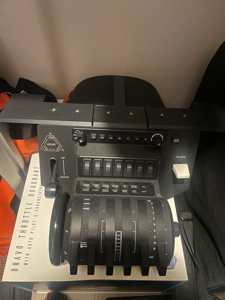 허니콤 브라보 스로틀 완본체 + ProDeckSim A320 스로틀 에드온 본체 박스 풀박스입니다. 구성품 빠진거 없습니다. 전반적으로 사용감 없음. 실사용횟수 얼마되지않음 A320 스로틀 에드온에는 스로틀레버+플랩레버+스피드브레이크레버+연료컷오프벨브 전부 작동합니다. 스로틀 위에 구조물은 기본 제공되는 고정클립으로 책상하부에 본체 거치용으로 3D프린팅하여 달아놓았습니다. 나사 풀어서 빼고 쓰셔도됩니다. 서울, 경기서부, 부천, 인천 직거래 및 카카오퀵 가능합니다. 그외지역 택배거래합니다.
