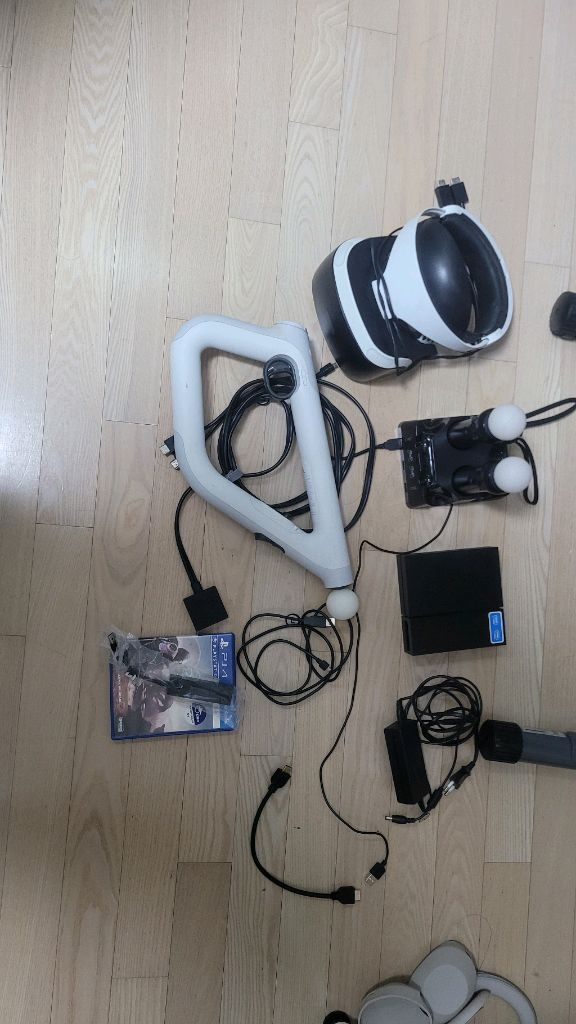 플레이스테이션 VR, 모션 컨트롤러, 카메라, 게임 디스크, 슈팅건 함께 드립니다. ※ 사진 속 PS5 호환 USB 젠더는 포함 입니다 ps5 사용 가능 1회 테스트 다시 포장 PS5에서 사용해보려고 테스트만 진행했습니다만, VR 게임은 하지 않을 것 같아 정리합니다. 젠더 사용 시 PS5에서도 구동 가능하며, PS4 Pro에서 사용했을 때보다 체감상 더 개선된 느낌은 있습니다. 인천남동구
