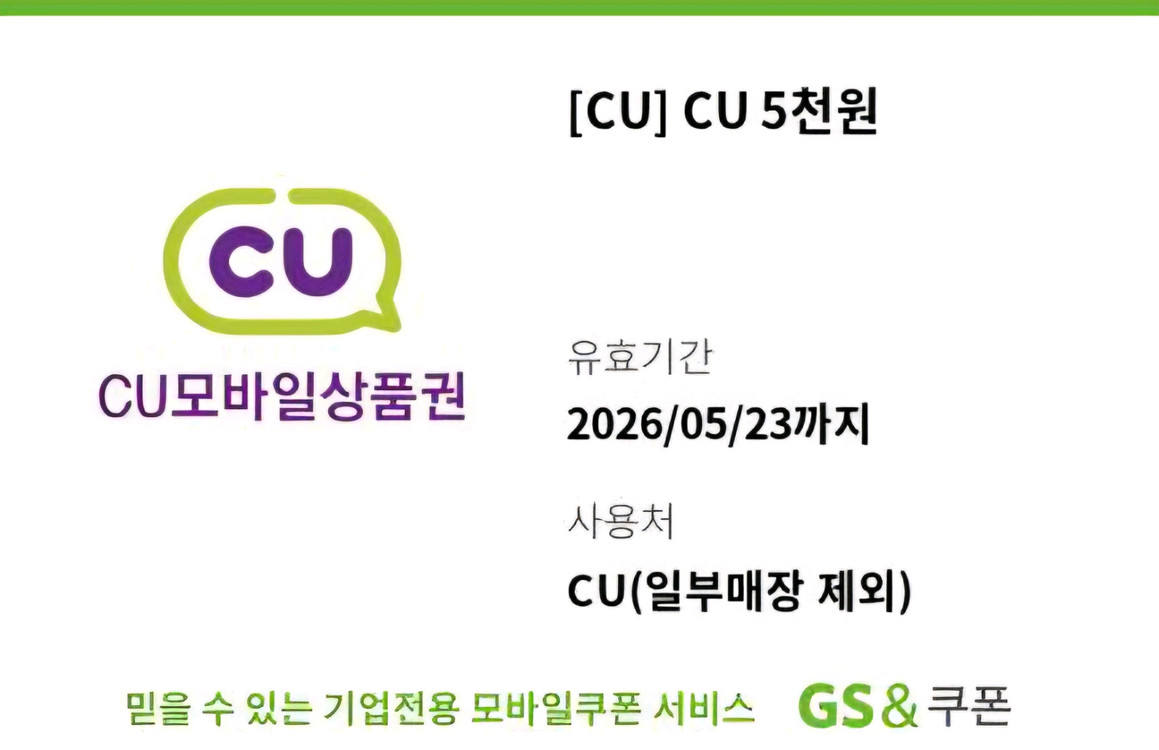 안녕하세요 편의점에서 사용 가능한 5천원 모바일 상품권이에요. 유효기간은 2026년 5월까지 입니다. 판매가 4500원 입니다. 4,500원 가지고 사기 안칩니다~ㅎ문자 부탁드릴게요 ㅎ 판매완료되면 이 글은 삭제 합니다. 입금 확인되면 바코드 보내드립니다. 감사합니다