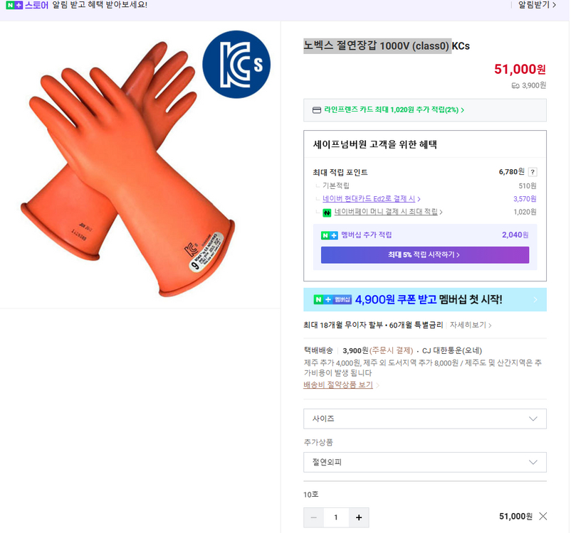 노박스 Rubber Insulating Gloves입니다 - Class 0, 1000V 절연 성능을 제공합니다 - 감전 사고로부터 작업자를 보호해 줍니다 - 전기 작업 시 안전을 확보할 수 있습니다 - 길이 360mm, 주황색, 사이즈 10입니다