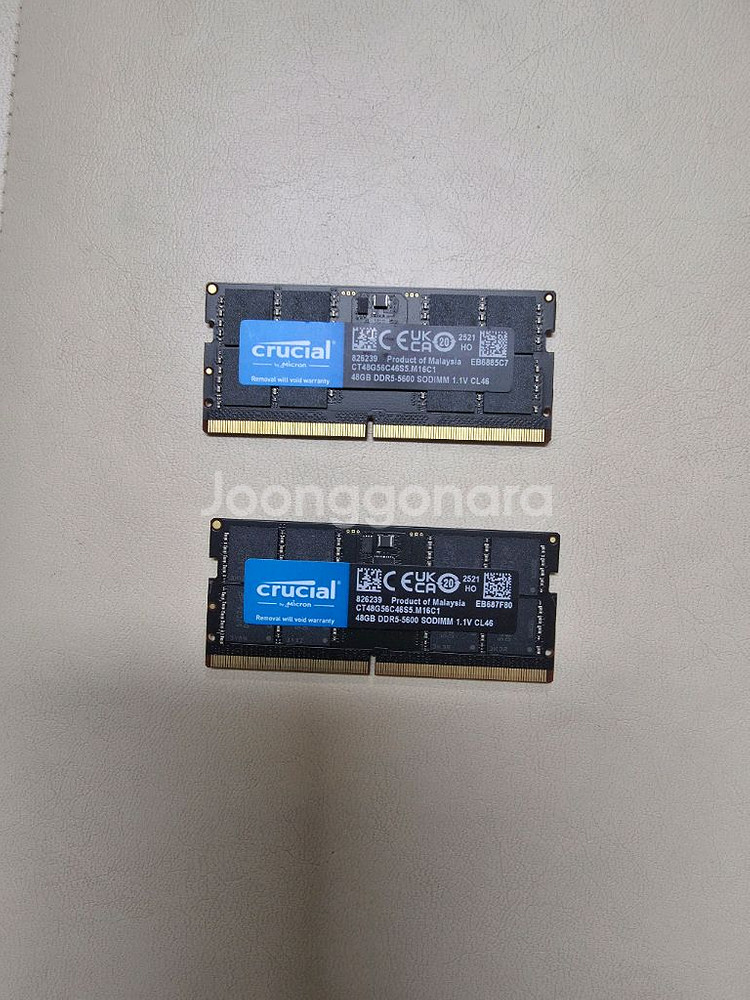 제품명: Crucial DDR5 5600 CL46 규격: DDR5 SODIMM (노트북용) 용량: 96GB (48GB × 2) 사용기간: 약 6개월 판매사유: PC 생태계를 정리하게 되어 판매합니다. 상태: 정상 작동, 실사용 제품 거래방식: 직거래 또는 택배거래 직거래 장소: 서울 강북구 미아역 인근 택배거래 시 배송비 판매자 부담 중고 특성상 단순 변심에 의한 환불은 어렵습니다.