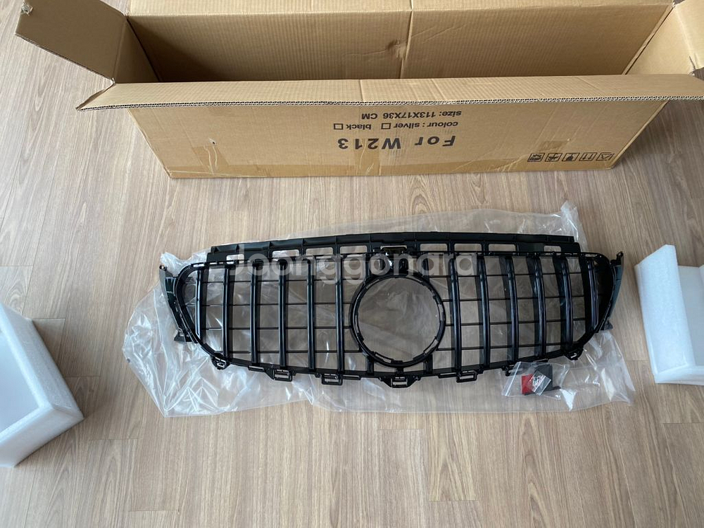 벤츠 E클래스 W213 GTR스타일 파나메리카나 세로그릴 전방카메라 있는차량 없는차량 모두 장착 가능합니다. 블랙색상,실버크롬색상 미사용 신품입니다.