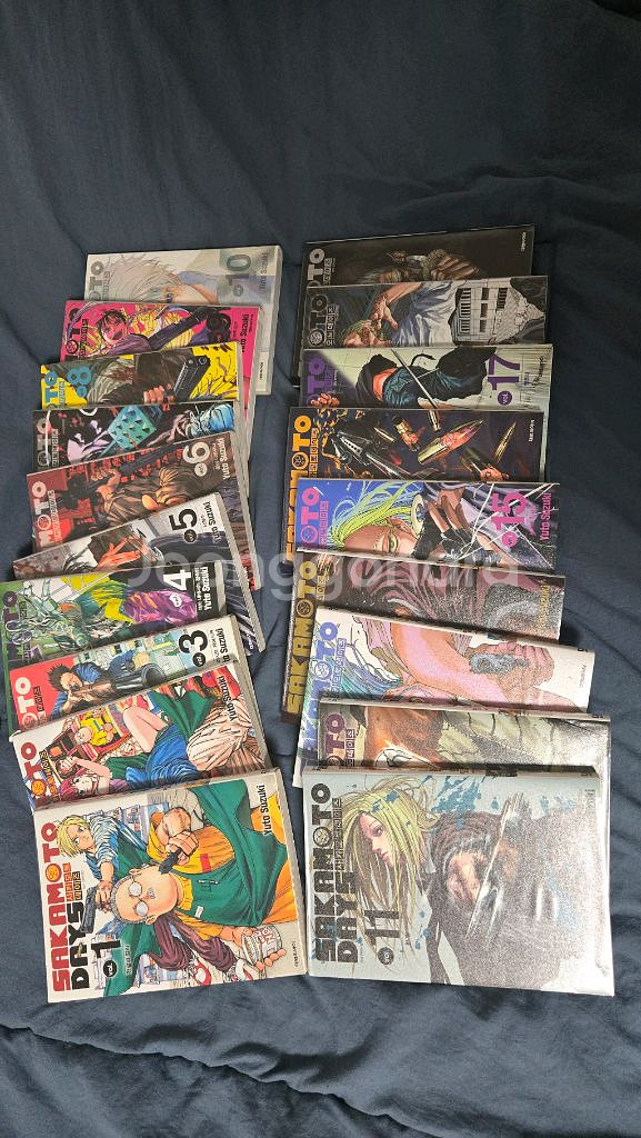 안녕하세요 사카모토 데이즈 1~19권 일괄판매합니다 책상태는 양호하며 책표지는 PVC용지로 커버한상태 입니다 저도 한번보고 책장에 모셔두고있는상태입니다 택배비는 포함한 가격입니다 만화 좋아하시는 분께 추천드려요! 많은 문의 부탁드려용!!