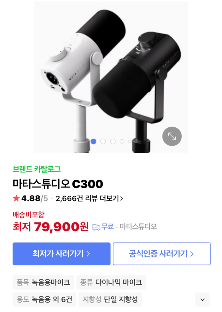 방송용 전문 마이크로 유명한 다이나믹 마이크입니다. 블랙과 화이트 두 가지 색상으로 구성되어 있어요. 방송이나 녹음용으로 최고의 선택이 될 것 같습니다. 색상은 흰색이고 2개월 정도 사용했습니다! 구성 : 마이크+마이크받침대+오인페선 !!USB선 없습니다 따로 구매하셔야 해요!! 자세한건 번톡 주세용