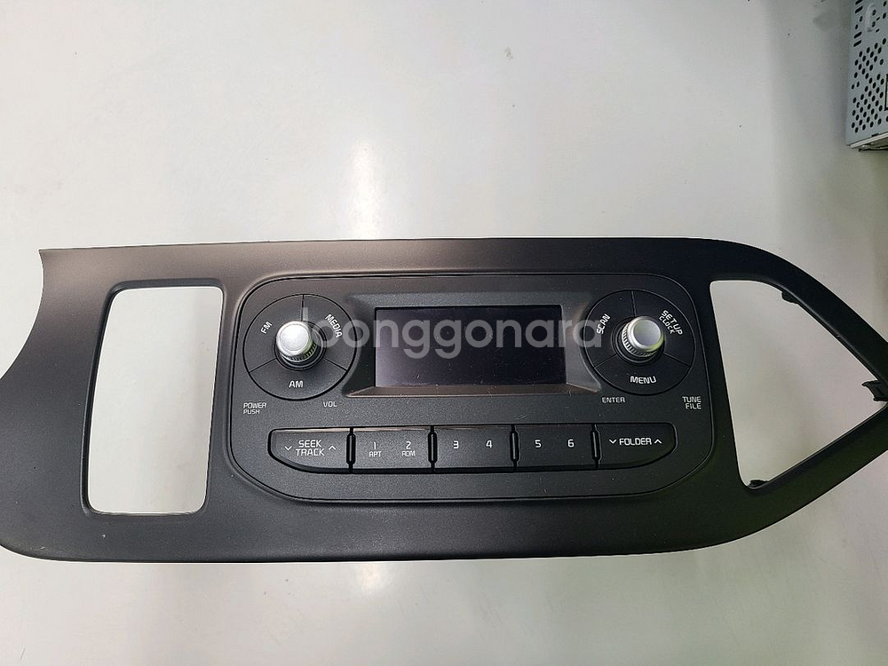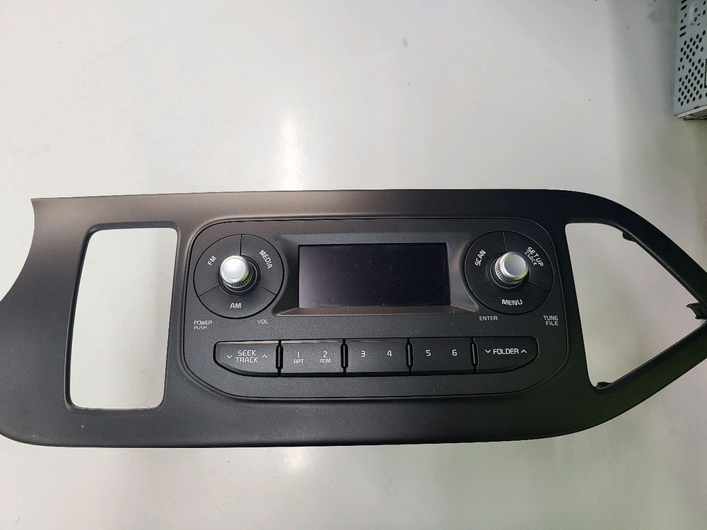 기아 차량용 순정 카오디오입니다. AM/FM 라디오재생 기능이 있고, 전체적으로 사용감은 있지만 작동에는 문제습니다. 중고제품 특성상 교환이나 환불은 어렵습니다.