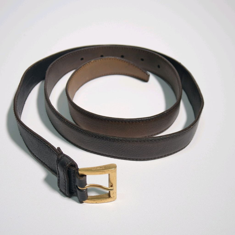 브라운-블랙 톤의 프라다 여성 벨트입니다. 은은하게 보이는 금장 버클이 포인트입니다. 가죽에 자연스러운 질감이 살아있어 고급스러워요. 별도 문의 없으시면 바로 안전결제 부탁드려요! 마지막 사진에서 확인하실 수 있듯이 벨트 가장자리에 일부 마모 및 사용 흔적이 있습니다. 너비- 2.5cm *반값 택배를 원하시는 경우, 가까운 CU편의점 주소를 적어주시기 바랍니다.