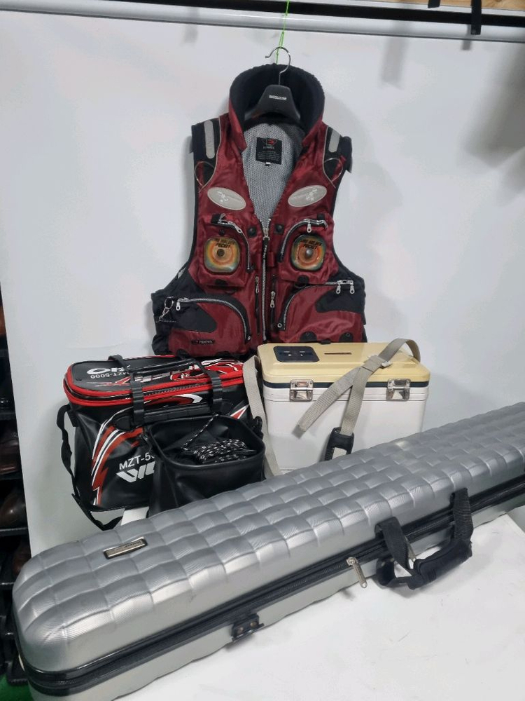 감성돔찌낚시를 기본으로 원투낚시 민장대낚시 루어낚시 당고낚시등 다양하게 구성되어 있습니다 머모피 제패기 1-53 릴찌낚시대(감성돔 벵에돔)와 시마노 바이오마스타릴(원줄3호) 머모피 킬러 3-53 릴낚시대(선상및 유료터 찌낚시밎 원투낚시용)+원다 4000번릴 (원줄5호) 3.6m 민장대로 개조한 릴찌낚시대(학꽁치 풀치 볼락)+다이와 1500번릴 다용도 당고루어대(전갱이 고등어 볼락 배스 갑징어등 전천후)1.8m 해우 창파 바다민장대 6.3m 밑밥쏠채 각종 구멍찌와 수중찌세트(새제품) 각종 목줄 1.2 1.5 1.75 호(새제품) 각종 바늘 소품일절 구명조끼 밑밥통과 두레박(새제품) 코스모스 낚시쿨러12리터 바낙스 하드케이스 바로출조가능 할수있도록 정비잘되어 있습니다 일괄판매만 합니다