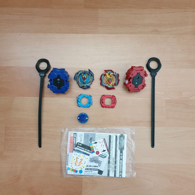 B-107 베이블레이드 초Z 배틀세트에 들어있는 위닝발키리,제트아킬레스 스페셜 입니다 가지고 놀던 제품이라서 중고감 있습니다 경기장은 제외입니다 왼쪽이 일반,오른쪽이 스페셜입니다 스페셜이 좀더 색상이 진한편이고 런처 차이 있습니다 제트아킬레스 스페셜 드라이버 분실로 일반버전으로 드립니다 사진상에 일반버전은 단순 비교목적입니다 같이 드리지 않습니다 설명서,스티커 포함(미개봉) 구매후 반품,환불 불가합니다 반값택배 2000원 일반택배 4000원