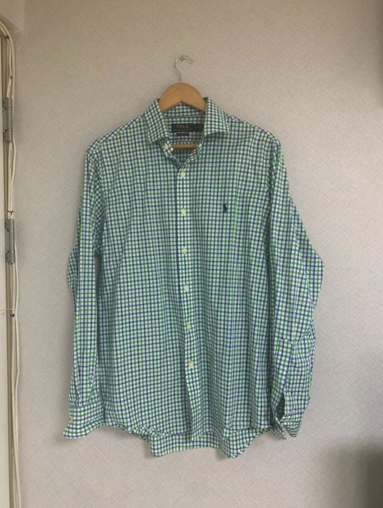 폴로랄프로렌 슬림핏 체크 셔츠입니다. 사이즈는 M이고 재질은 100% 코튼 스트레치입니다. 산뜻한 블루 & 그린 체크 패턴이 돋보이는 셔츠입니다