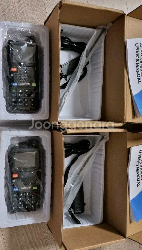개인정보(거래정보)를 주고받는 행위는 사기에 노출될 수 있으므로 즉시 중고나라로 신고해 주세요바오펭 UV-5RH 무전기 2대세트 입니다.미사용 새제품.장거리 안테나 2개추가원하시면 5천원 추가.택배5천원.