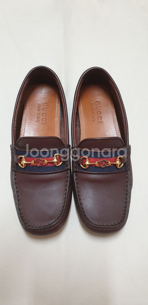 구찌의 웹 스트라이프 드라이빙 슈즈 네모진 모양의 앞코, 그린과 레드색상의 시그니처 웹 디테일, 골드톤 하드웨어, 브랜드 로고를 새긴 안창, 슬립온 스타일 스터드(미끄럼 방지)가 장식된 고무소재 밑창 겉감은 송아지 가죽 100% 밑창은 고무 100% 스토리텔링 ■ 2022년 7월 14일에 서울 신세계백화점에서 친구에게 선물 받았습니다 2번 잠깐씩 착용후 보관만해서 사진에 나와있듯이 상태는 A급 입니다 송아지 가죽이라 발을 감싸는 가죽의 느낌이 매우 부드럽고 신축성 또한 뛰어나서 무엇보다 발이 편해요~~ 좋은 신발 오래 신으려고 박스랑 택은 버렸네요 그후 다이어트에 성공하고보니 신발이 커서... 사이즈만 맞으면 부모님들 효도신발로도 추천드립니다 오래토록 잘 신으실 주인을 기다릴게요 ^^ 직거래 환영합니다 ~ 🦋 배송비 6000원