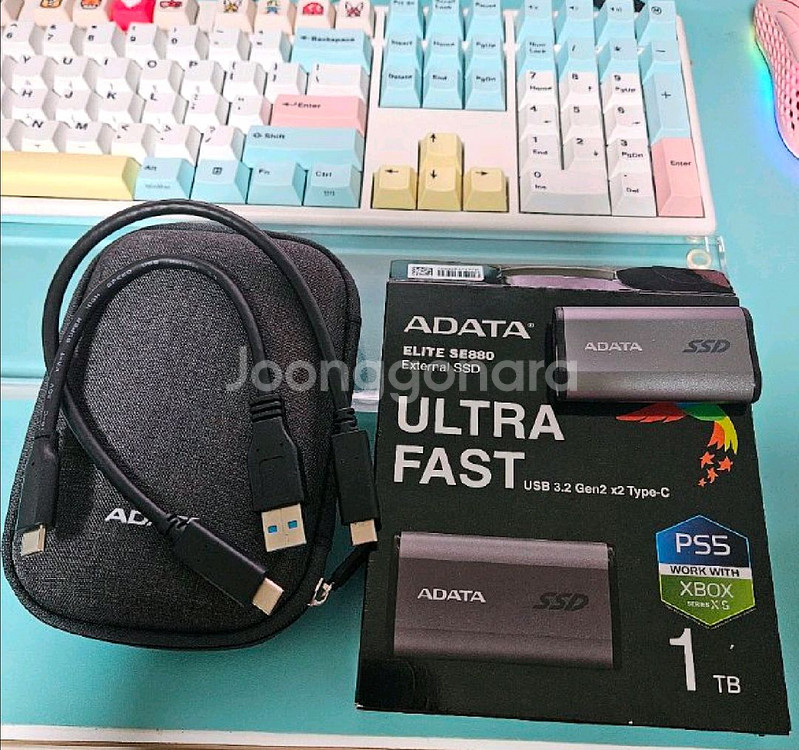 adata 1TB 고속 SSD입니다. USB-C 케이블과 전용 파우치가 포함되어 있어요. 상태 양호하고 정상 작동합니다. 플스5 엑박연동 되고 2000MB.S속도 usb3.2입니다. 분해한뒤 어댑터 이용해서 PC 노트북에 써도 됩니다. 어댑터증정