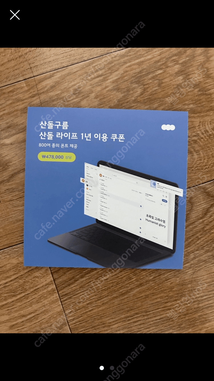 1. 제품명 : [미사용] 산돌구름 폰트 1년 이용권 2. 상태 : 미사용 3. 연락처 : 네이버 채팅 주세요 4. 거래방법 : 사진전송 거래 5. 등록기간 6. 설명 : 노트북 구매하고 사은품으로 받았습니다. 등록시 필요한 노트북 시리얼번호도 같이 드립니다