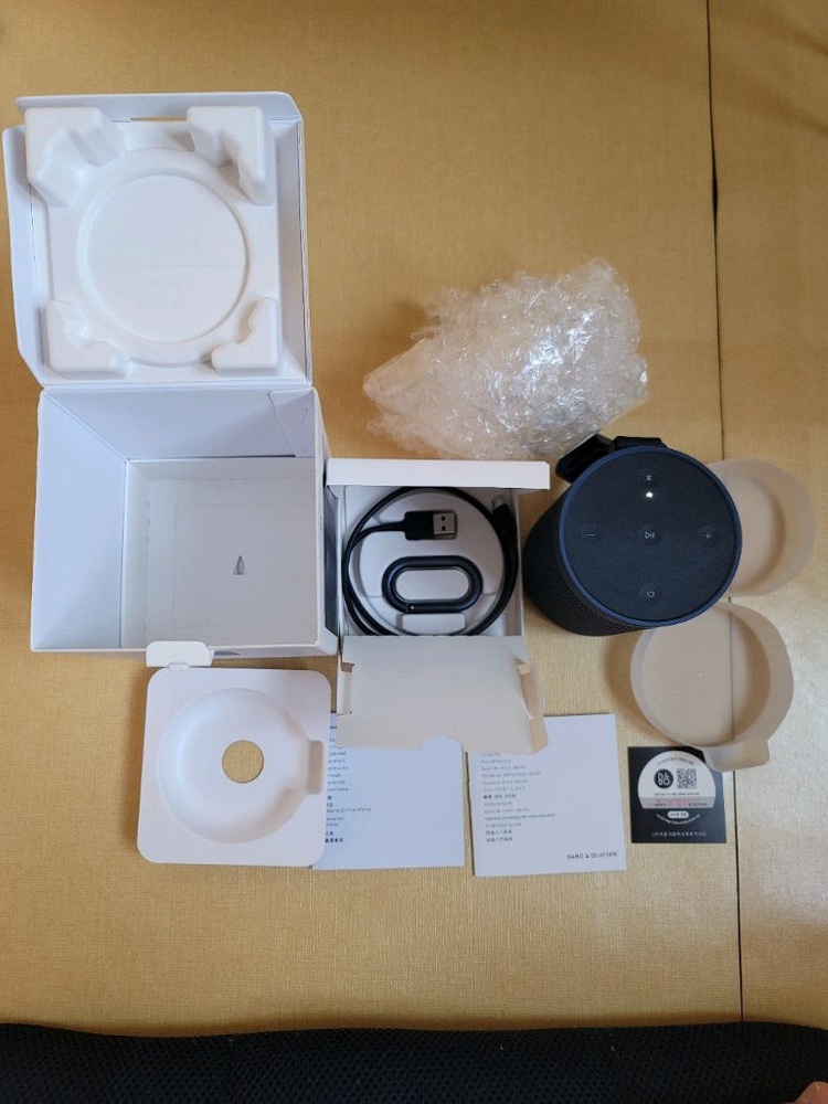 지금까지 아무 이상없이 잘 사용했구요. 다른 제품으로 업그레이드 하기 위해 내 놓습니다. 마샬,JBL 과 다르게 시원하고,깔끔한 소리 입니다. 직구,병행수입 아니고 국내 뱅앤 공홈에서 구매(사진참고) 구매했을때 구성품 다 있습니다.(사진참고) 실내에서만 사용해서 생활먼지 정도 있고 찍힘,깨짐 없습니다. 네고문의X 구매후,반품 환불 불가.