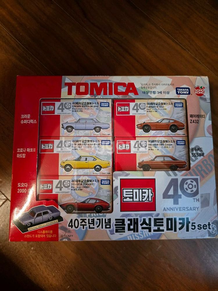40주년 기념 한정판 클래식토미카 5대 세트입니다. 박스 상태 양호하고 컬렉션용으로 소장하기 좋아요. 빈티지 차량 모델들이 포함된 특별한 에디션이에요. 새상품. 테이프씰도 안뜯음.